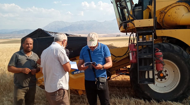 Hububat hasadı döneminde ekiplerimiz bölgeyi gezerek, dane kaybının en aza düşürülmesi amacıyla yürütülen denetimlerde; çiftçilerimizin herhangi bir mağduriyetle karşılaşmaması için biçerdöver operatörlerinin belgeli olup olmadığı, yangın söndürme ekipmanları ile yardımcı eleman bulunup bulundurmadığı, biçim yüksekliği, dane döküm durumu, elek ve elevatör, batör, kontrabatör gibi ayarlarının tam olup olmadığını denetliyor.