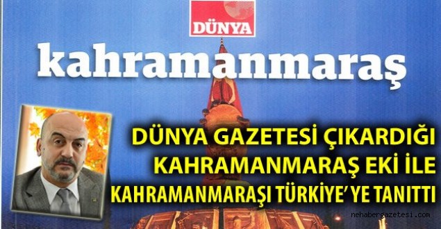 Dünya Gazetesi Kahramanmaraş Temsilciliği Kahramanmaraş’ı Türkiye’ye tanıttı. Çıkardığı Dünya Gazetesi Kahramanmaraş eki ile Kahramanmaraş’taki sanayinin gelişmesini, ekonomisini, Tarihi Kültürel Yapısını, kalkınmasını ve müteşebbis yatırımcılarını okuyucularıyla buluşturdu.