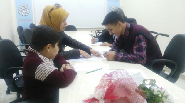 Kahramanmaraş Büyükşehir Belediyesi tarafından engellilere yönelik başlatılan okuma yazma kursuna katılan öğrenciler, öğretmenler gününde öğretmenlerine çiçek takdim ettiler.