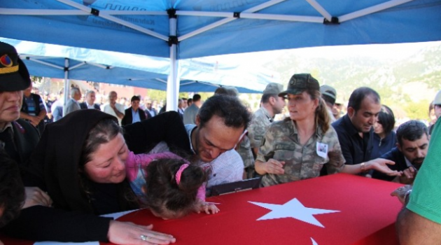Şehidin 4 yaşındaki kızı Ceylin Dobur'un babasının tabutunu annesi ile son kez öpmesi ise yürekleri dağladı. Küçük Ceylin, babasına asker selamıyla veda etti.