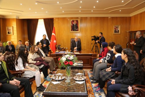 Valilik makamında gerçekleşen ödül töreninde Vali Güvençer, öğrencileri kapıda tek tek öperek karşılarken; sempatik tavırları ile de öğrencilerin gönlünü kazandı. Milli Eğitim Müdürü Mehmet Emin Akkurt, üst düzey Milli Eğitim Yöneticileri, öğrencilerin okul idarecileri ve öğretmenleri ile bazı velilerin de katıldığı törende konuşan Vali Mustafa Hakan Güvençer, öğrencileri gösterdikleri başarıdan dolayı kutladı.