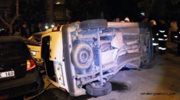 Kahramanmaraş'ta kontrolden çıkan hafif ticari araç, yol kenarında park halinde olan iki otomobile çarparak yan yattı. Kazada bir ağır iki kişi yaralandı.